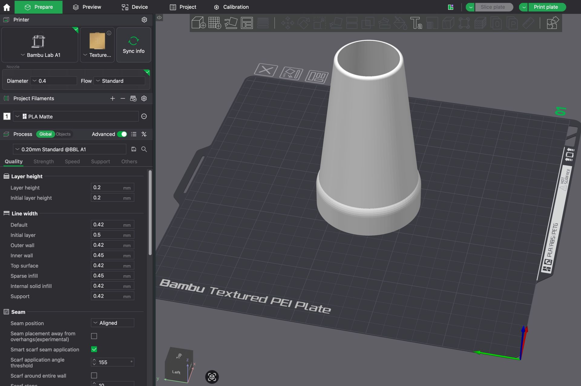 I just used the standard 0.2mm preset within Bambu Lab with the PLA Matte preset.